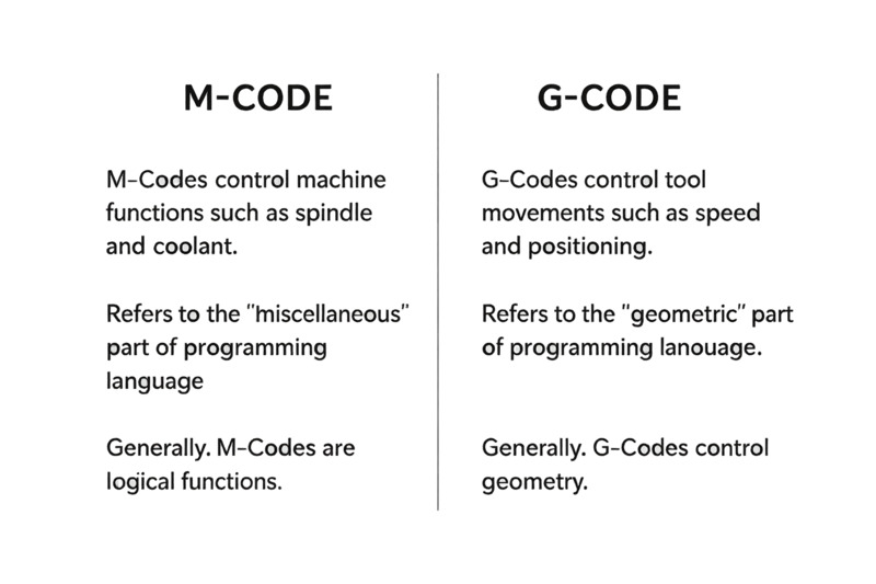 Many CNC newcomers confuse M-codes with G-codes, but understanding the distinction is key to writing reliable, safe programs. Both are critical, but they control entirely different aspects of the machining process.